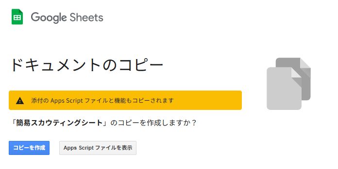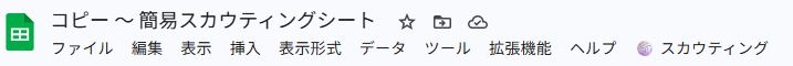 コピーされたファイルを開き、しばらく待つと、スプレッドシートのメニュー画面にスカウティングボタンが現れます。