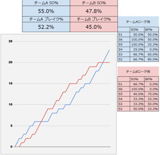• ブレイク率が高い = サーブで崩し、ブロックやレシーブからのカウンターが決まっている。