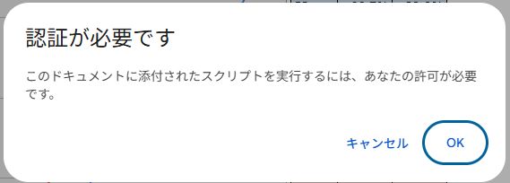 すると、認証が必要という画面がポップアップします。「OK」で進んでください。